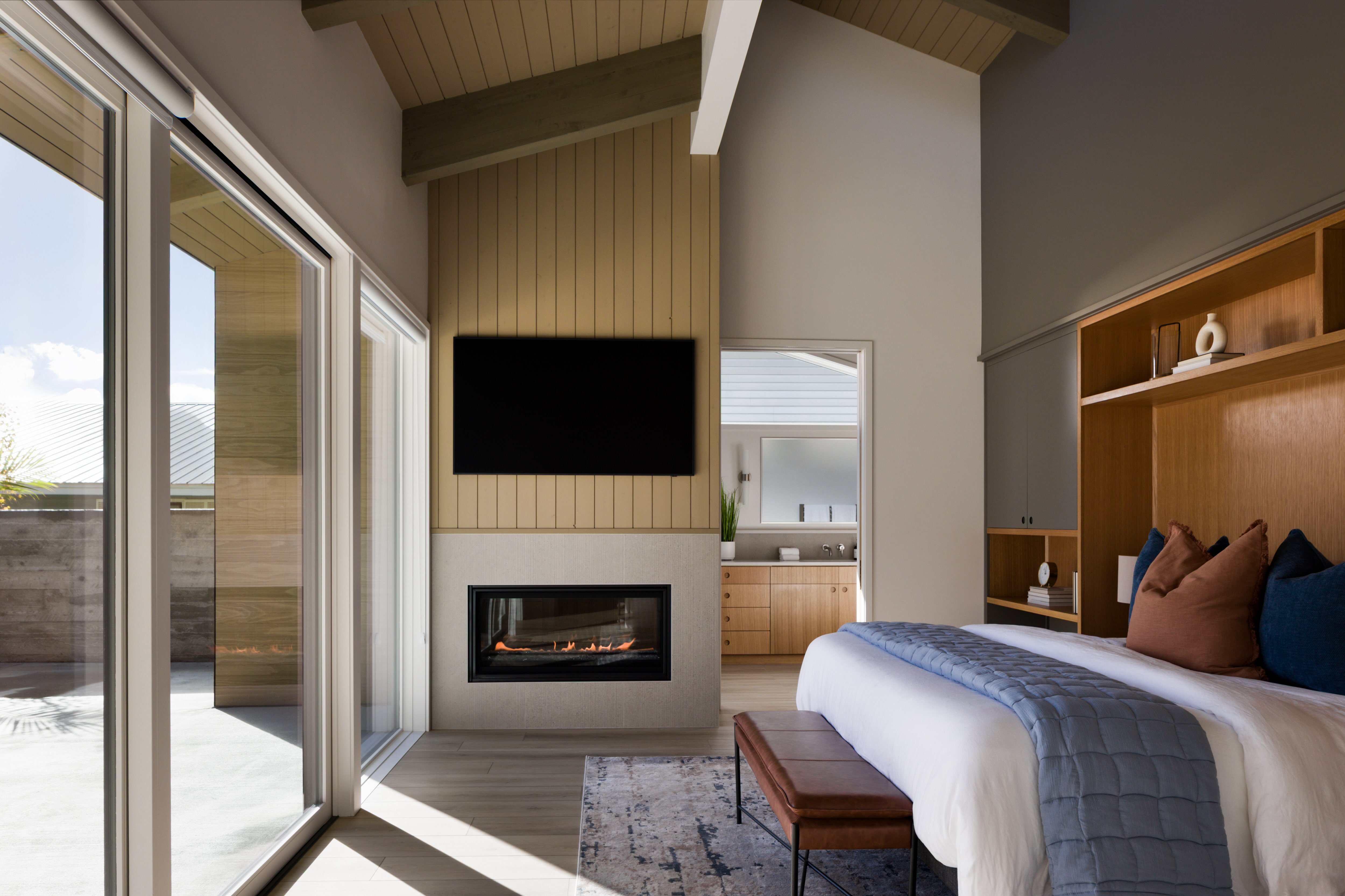 After a long day out skiing in the mountains, a cozy Rafter Room provides a nurturing space to rest and relax.