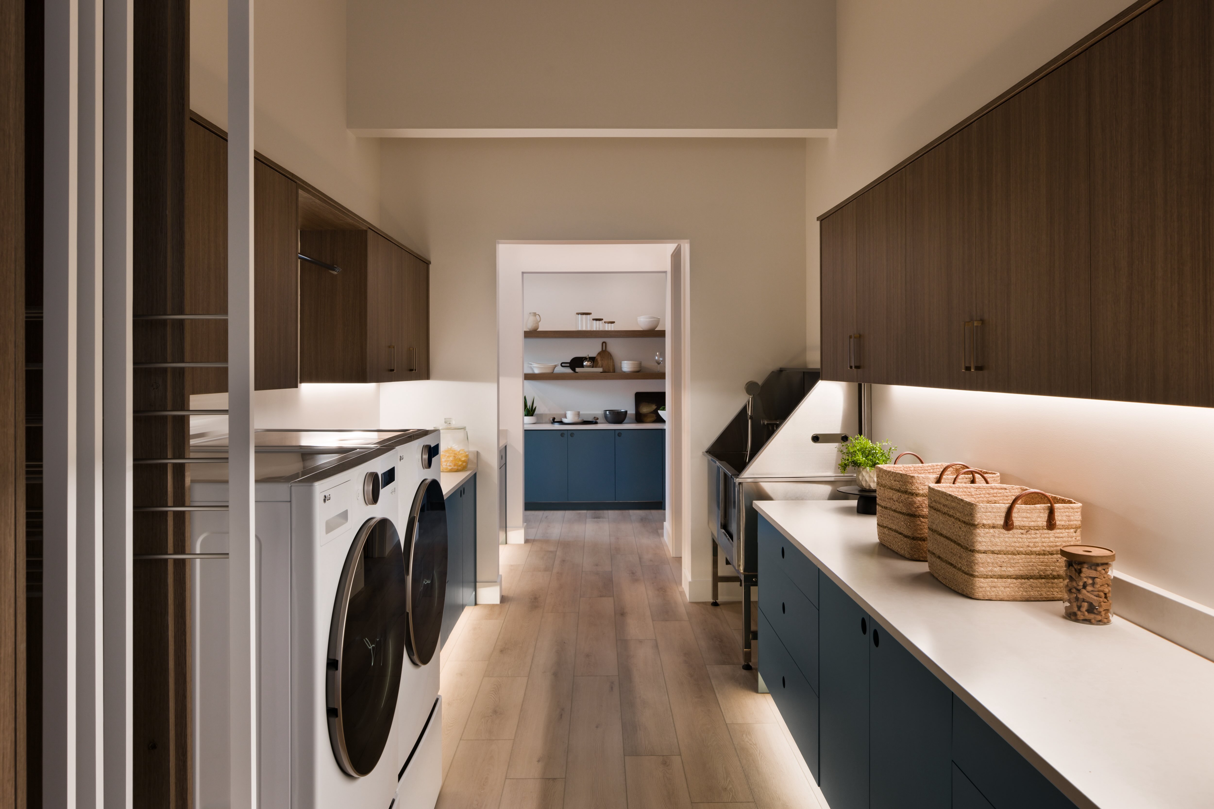 An open floor plan, including the wide-open kitchen, allows for gathering. We considered multiple circulation patterns based on the expected flow of friends and family moving throughout the home.