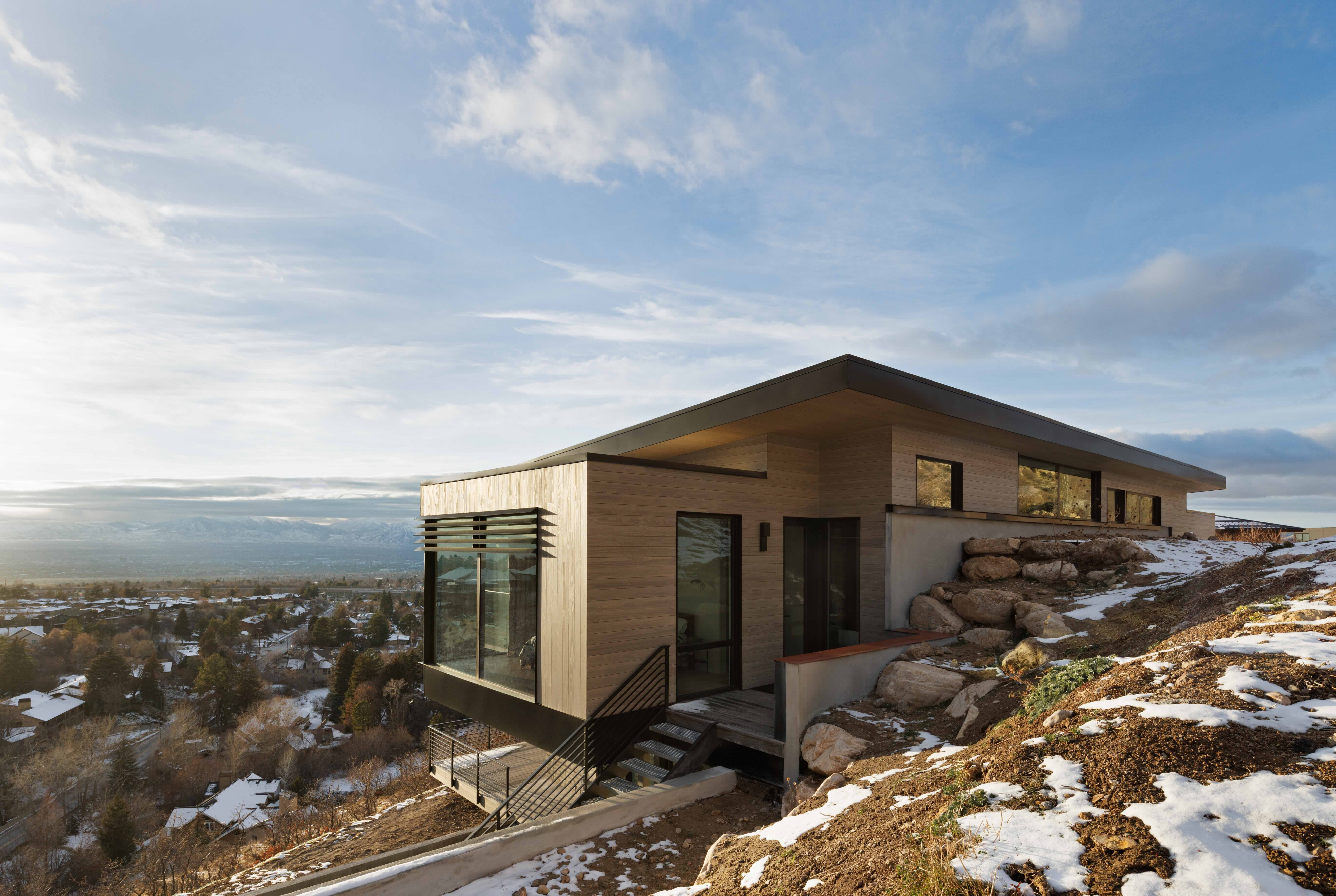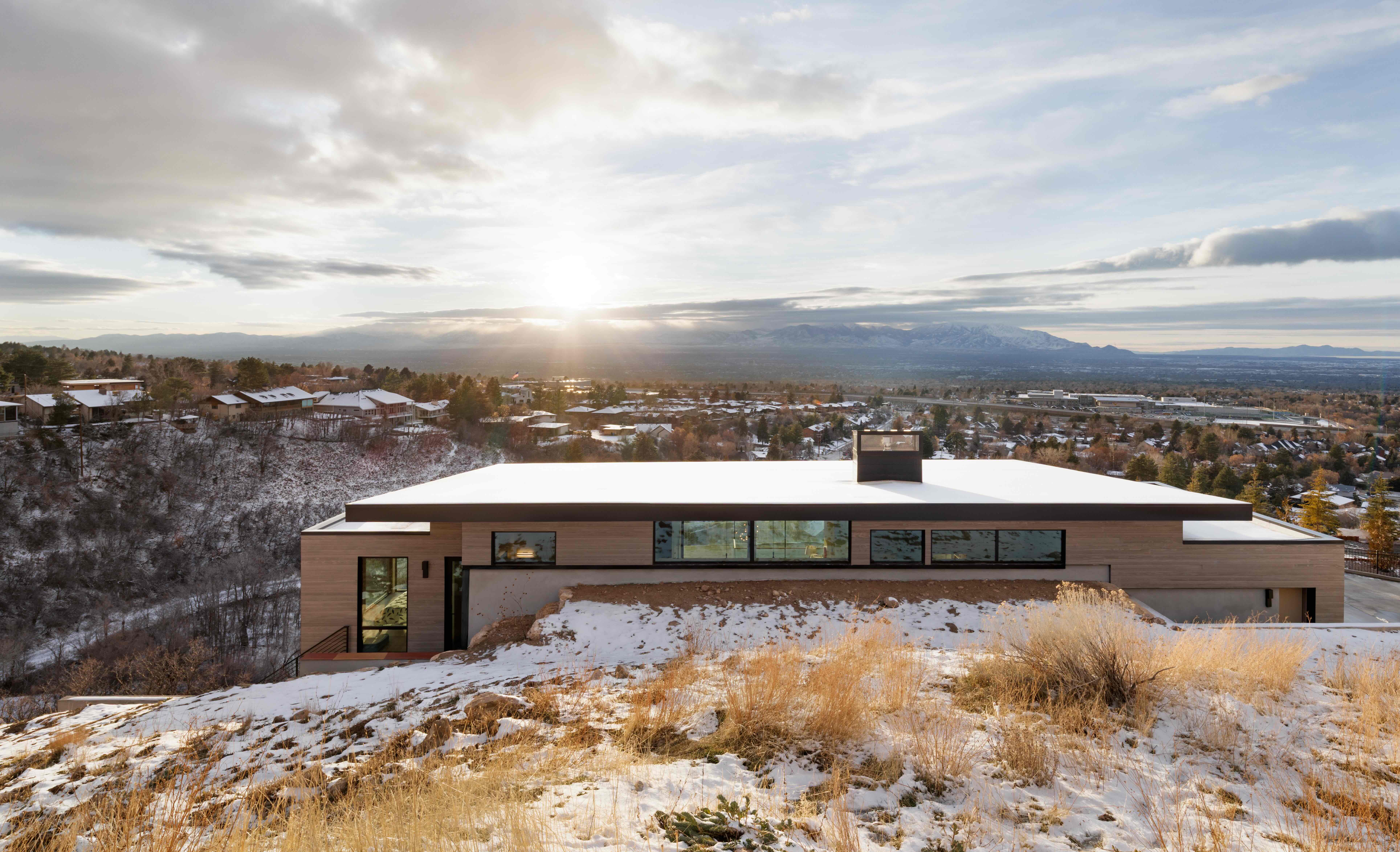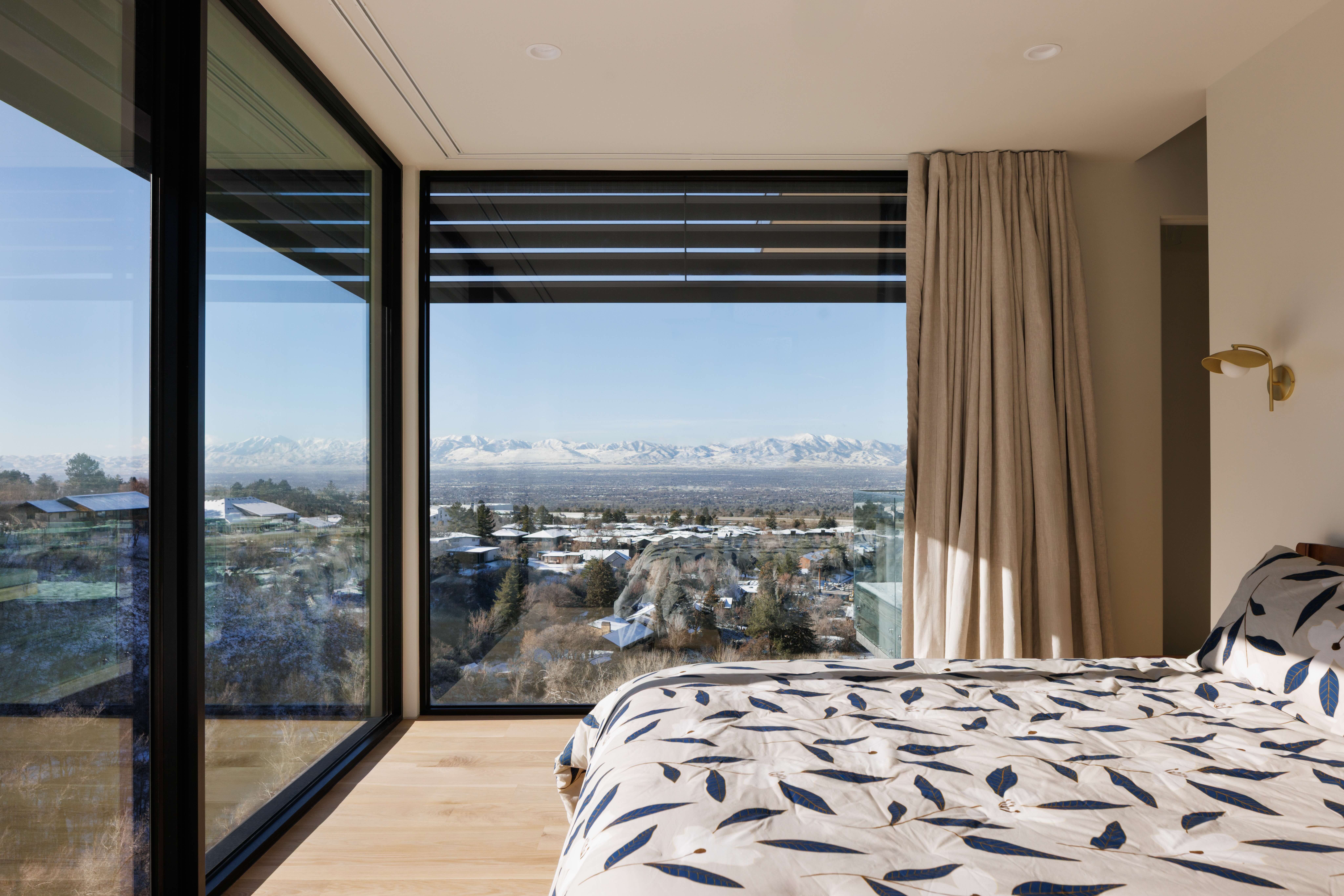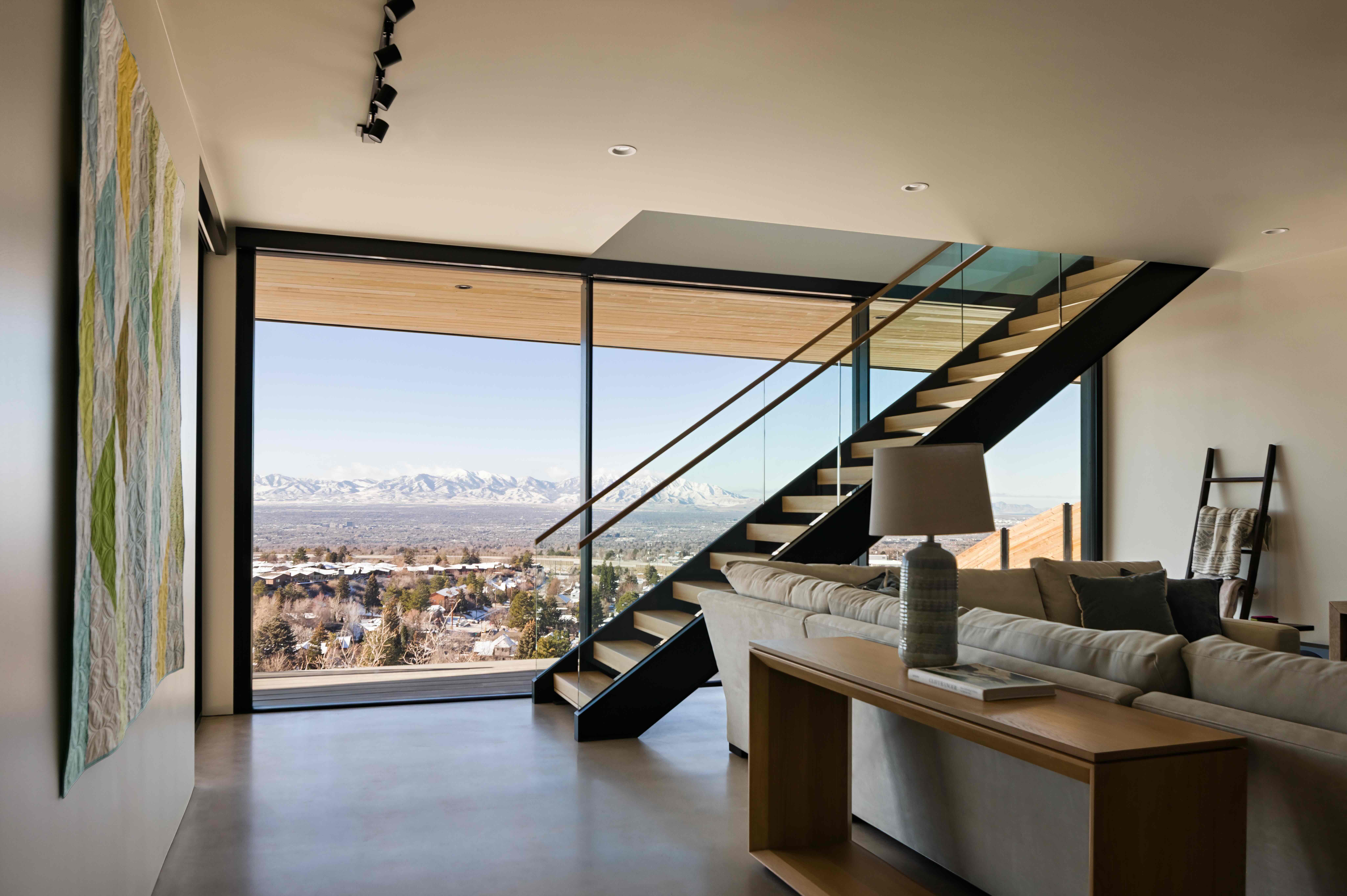 Massive floor-to-ceiling windows fill rooms with breathtaking views of the soaring Mount Timpanogos.