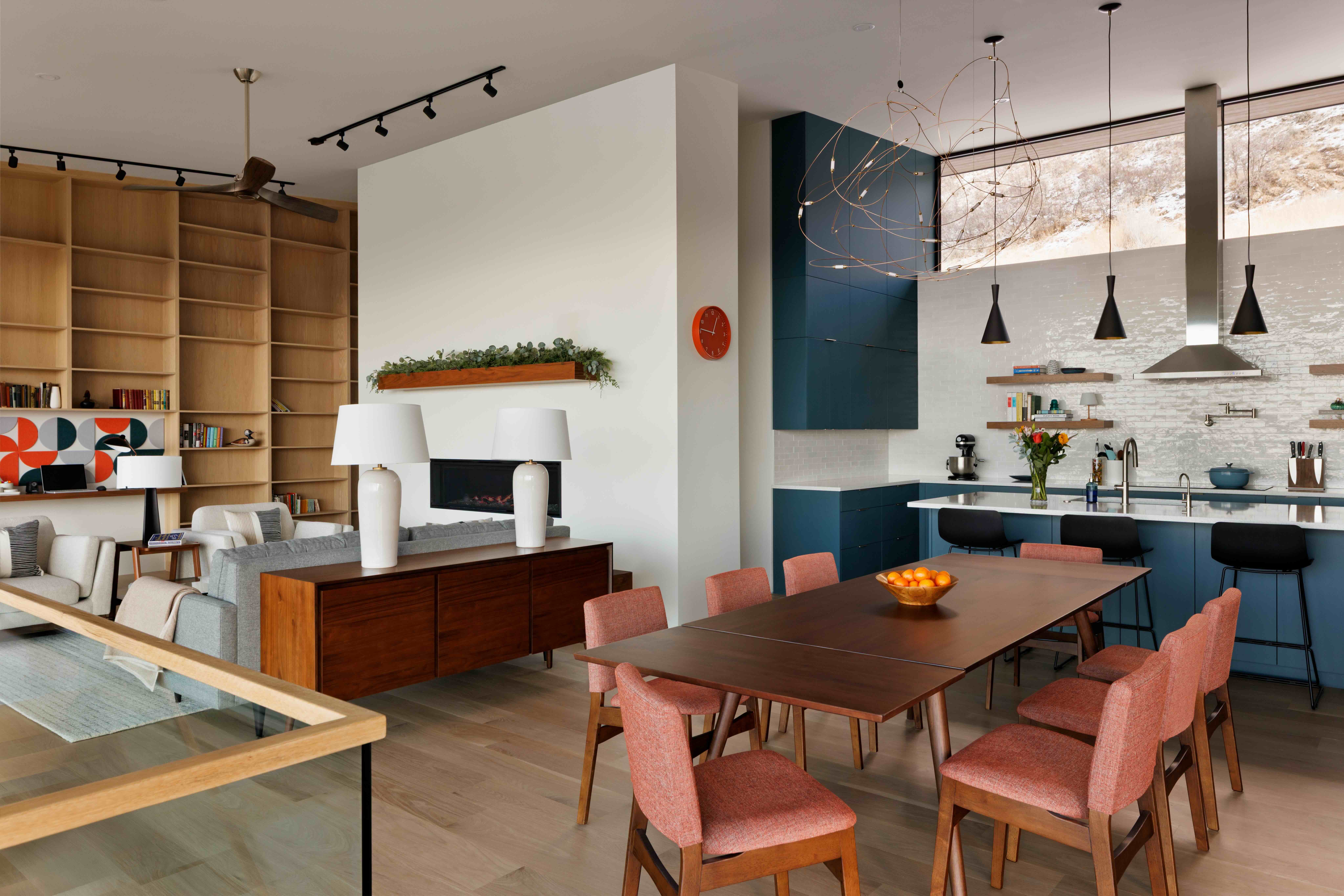 The kitchen and common areas orient to the north, reflective of how the original home was situated.